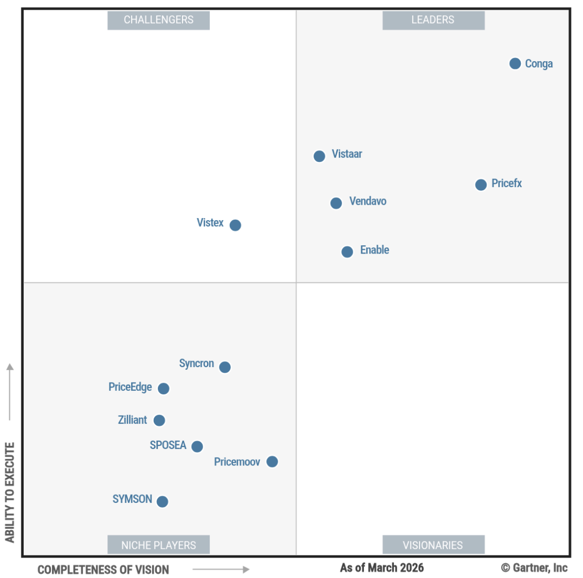 Vendavo has been named a Leader in the Gartner Magic Quadrant for B2B Pricing & Rebate Optimization Software, and we believe this is due to our broad product footprint and deep rebate management functionality.